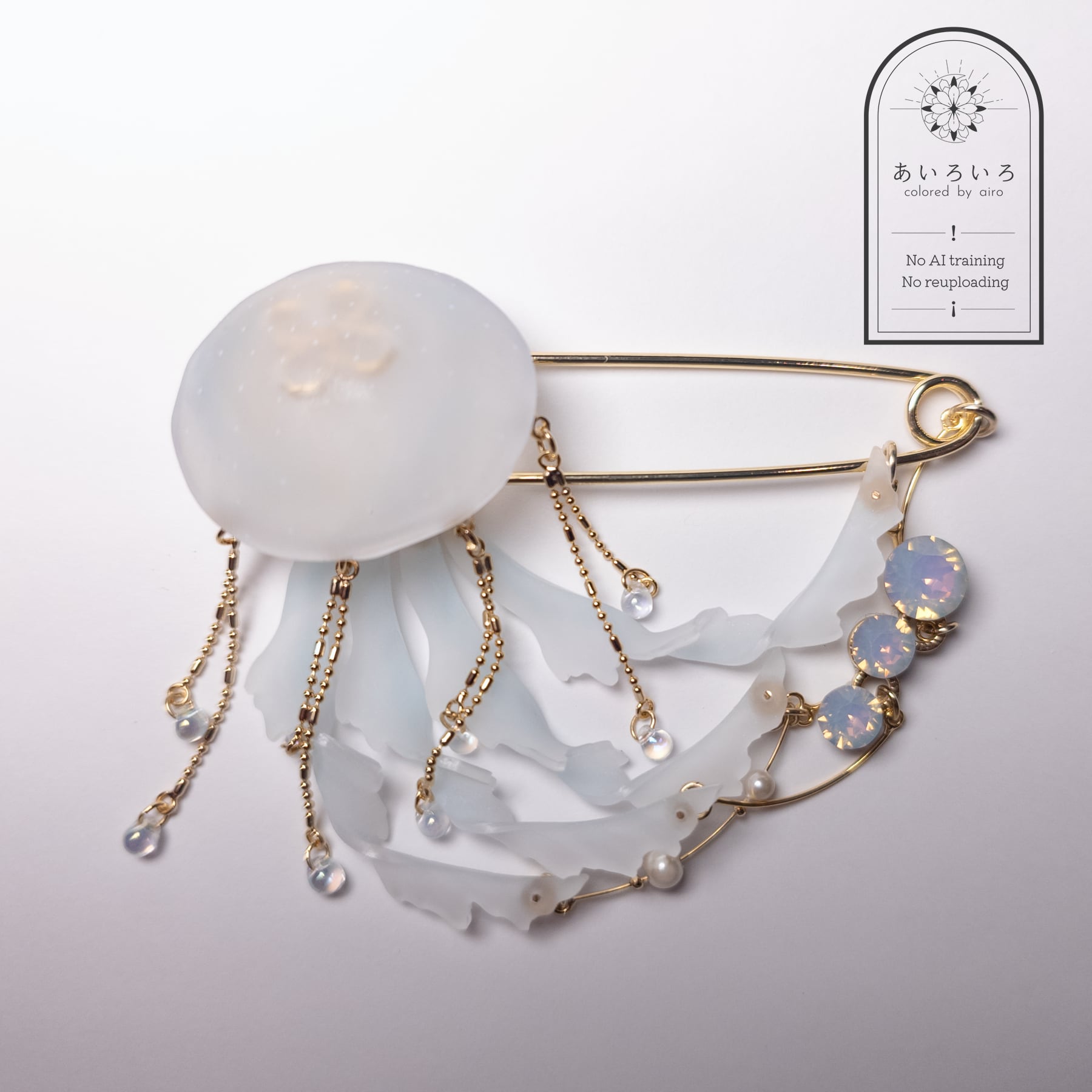 ぼんやりとした透け感が特徴的な、クラゲのブローチです。